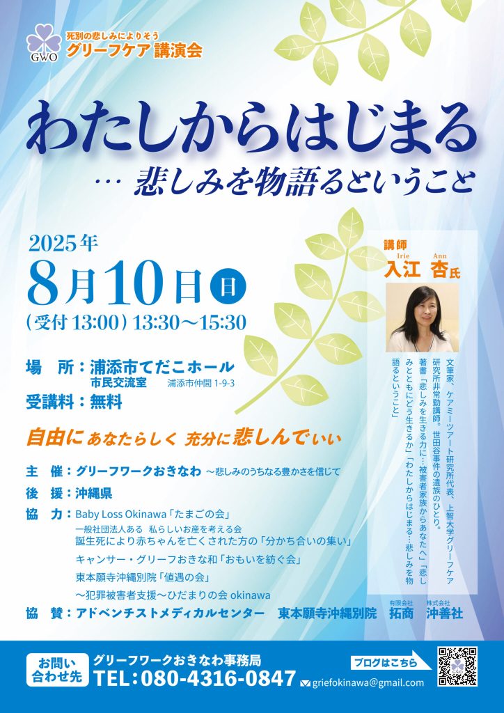 主催団体「グリーフワークおきなわ」のブログもご覧ください。